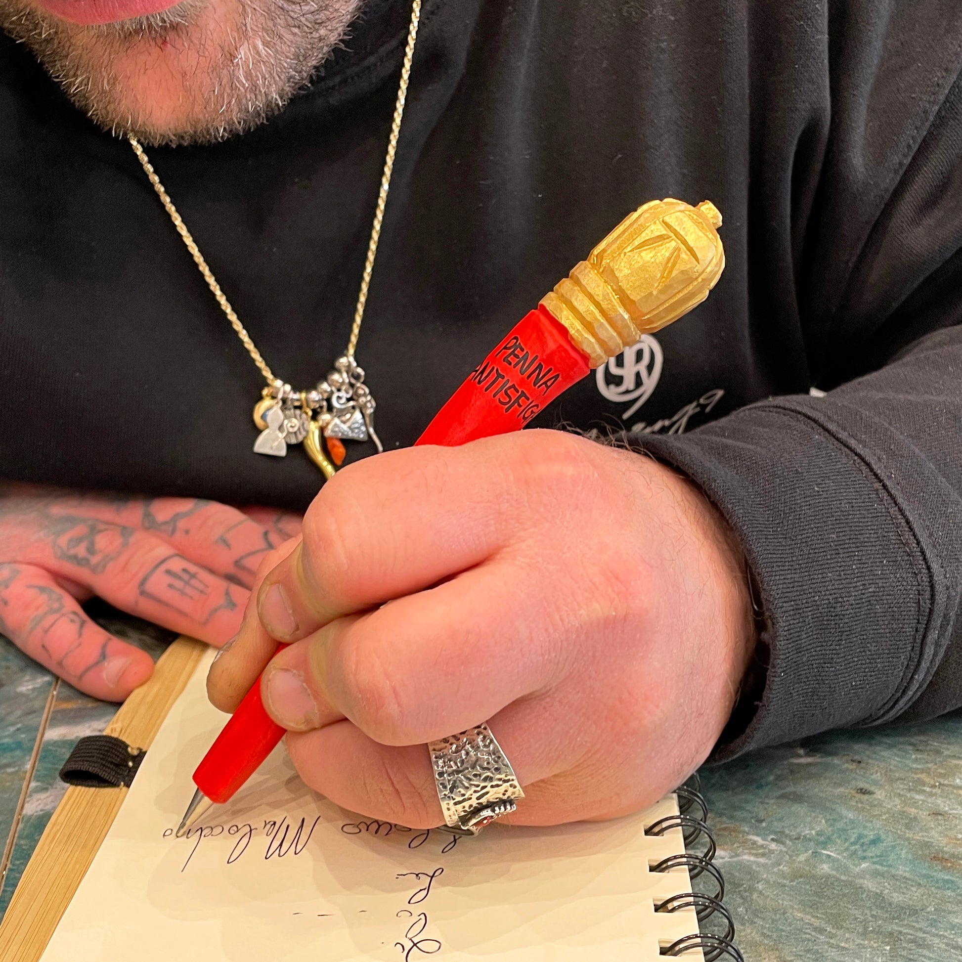 Prodotto artigianale. Ogni penna è realizzata con cura e attenzione, senza stampi o altri strumenti, rendendolo un pezzo irripetibile ed esclusivo.